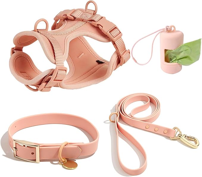 4 PCS Dog Walking Set | Harness, Collar, Leash, Poop Bag Holder