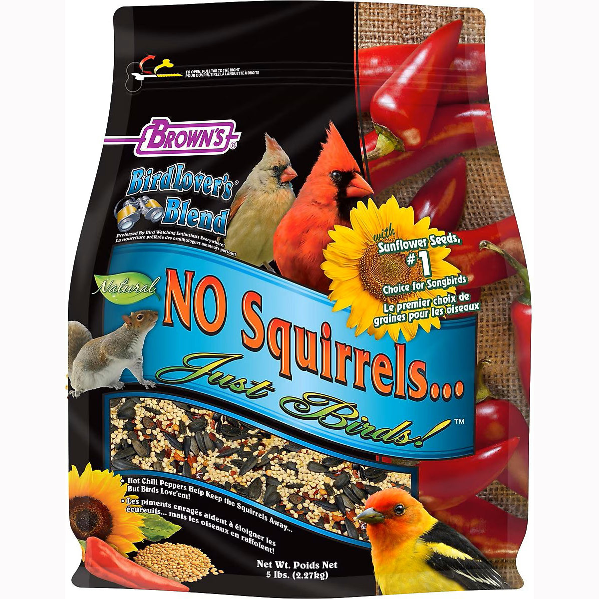 Birds Love It…Squirrels Don’t! Birds love our natural ingredients including our premium black oil sunflower seeds, the #1 choice for songbirds. Plus, we’ve blended in chili peppers that safe to eat and loved by birds, but squirrels find them too spicy and hot. This unique blend of black oil sunflower seeds and peppers provides a dual method of deterring squirrels, while attracting colorful songbirds of all sizes.