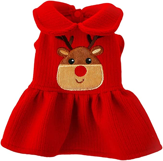 - Lovely Design- A stylish female dog princess dress, and male dog hoodie. These costumes are printed with a Christmas reindeer pattern; the best Christmas dog costume gifts for your little boy and girl dogs.
