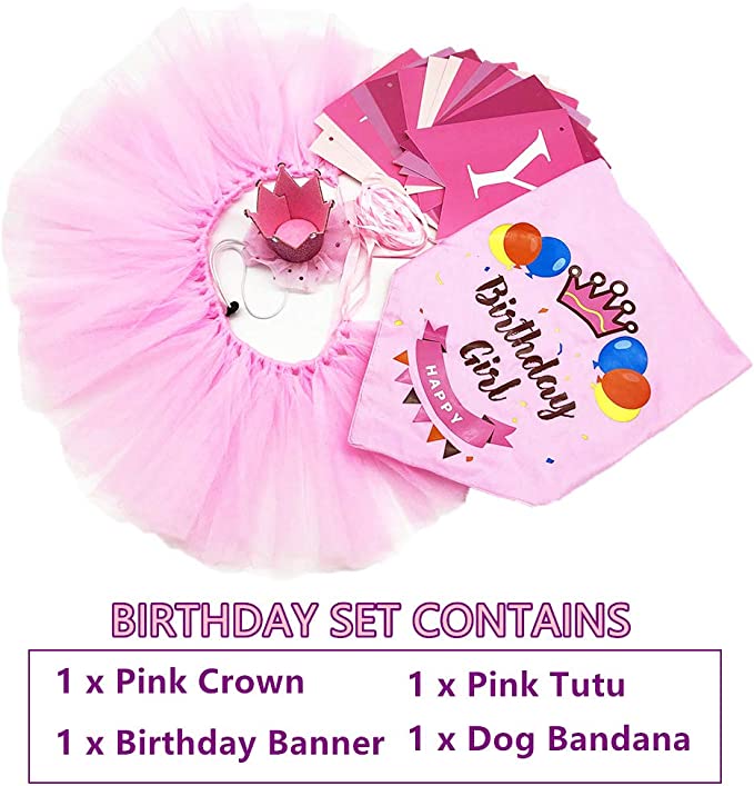- Everything for Dog Birthday Party: 1*bandana+1*banner+1*crown+1*tutu skirt, all you need for your girl's pawty time is here!