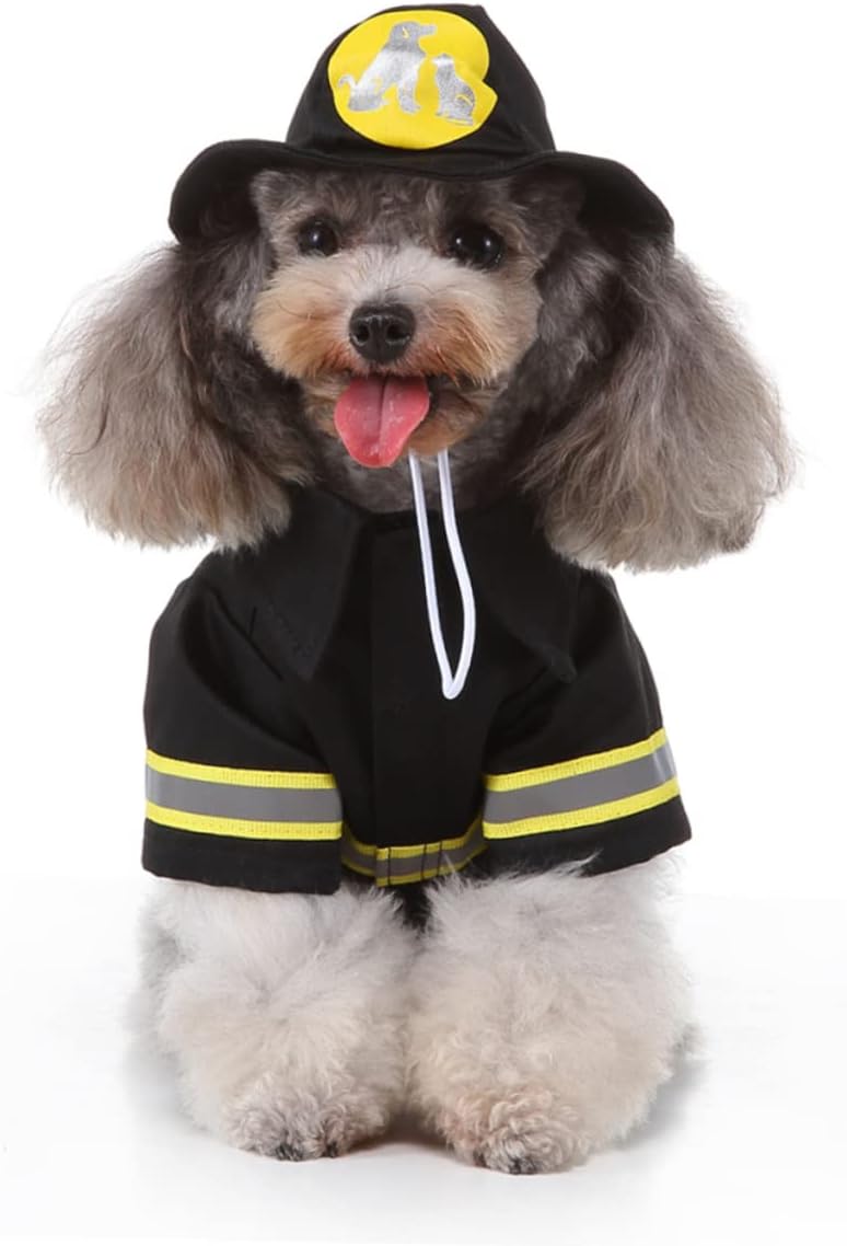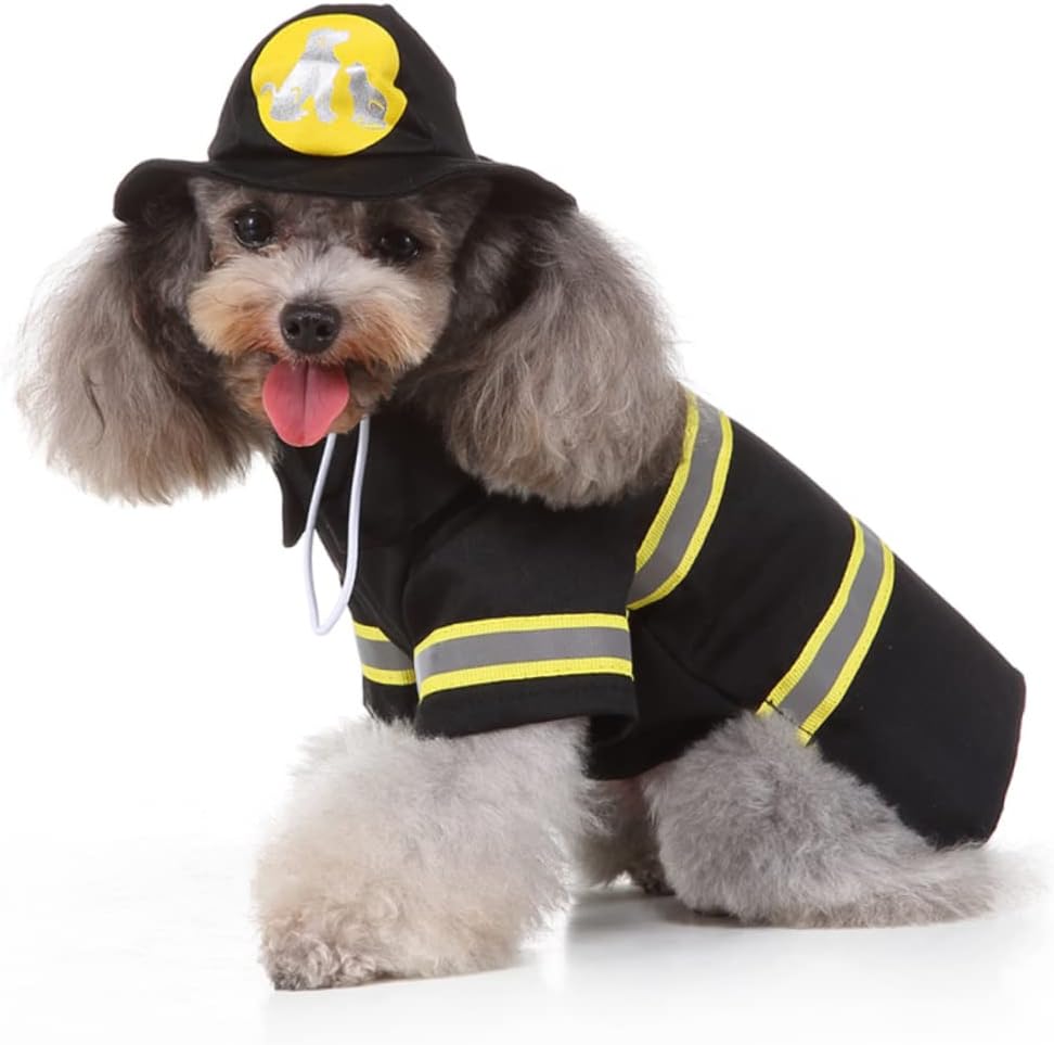 With this black uniform firefighter dog costume, your furry friend will be ready to slide down the fireman’s pole and ride in the fire engine. While he might not actually do that, this costume will ignite his imagination! First step: put out that fire. Second step: let’s have some fun!