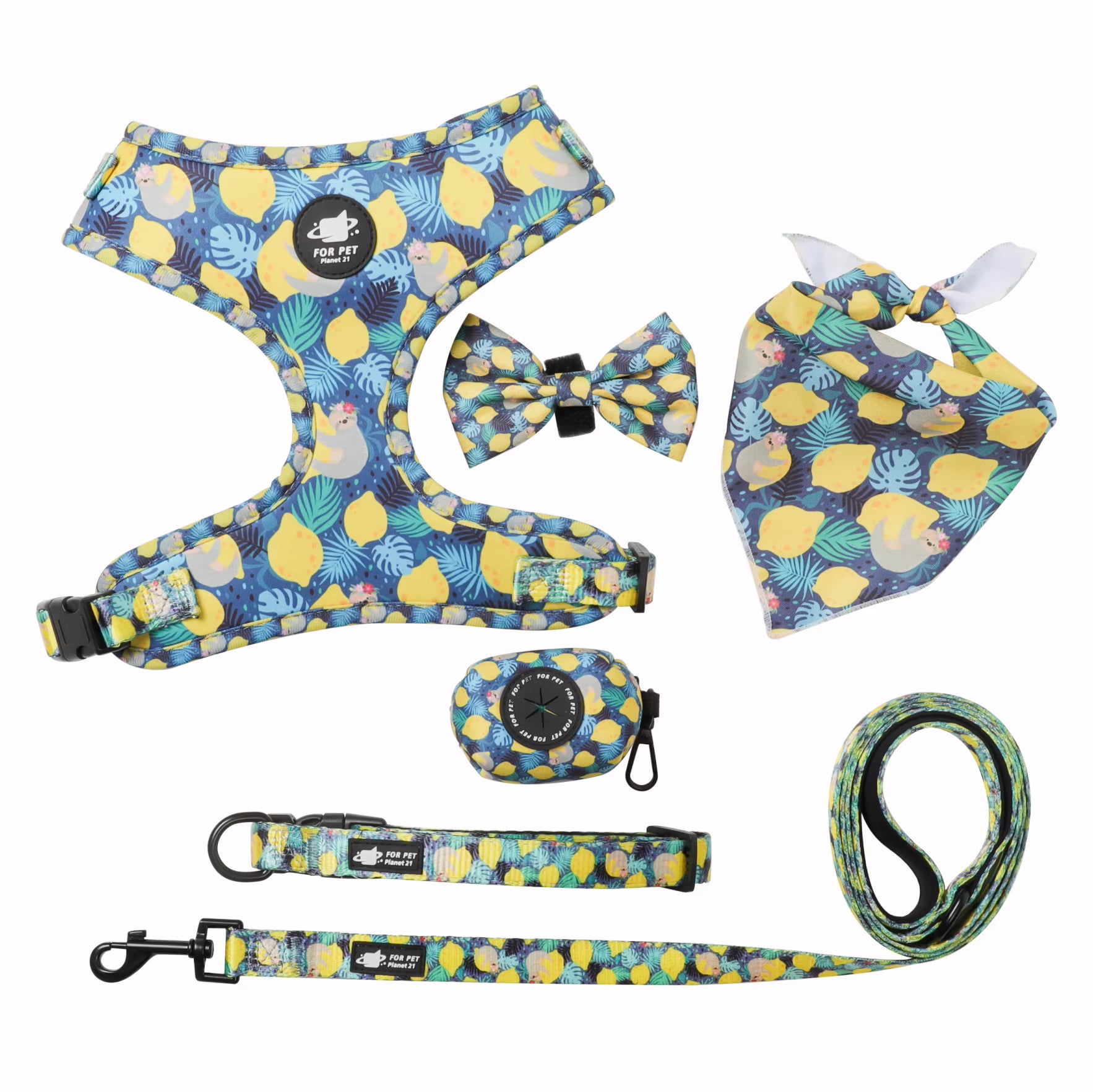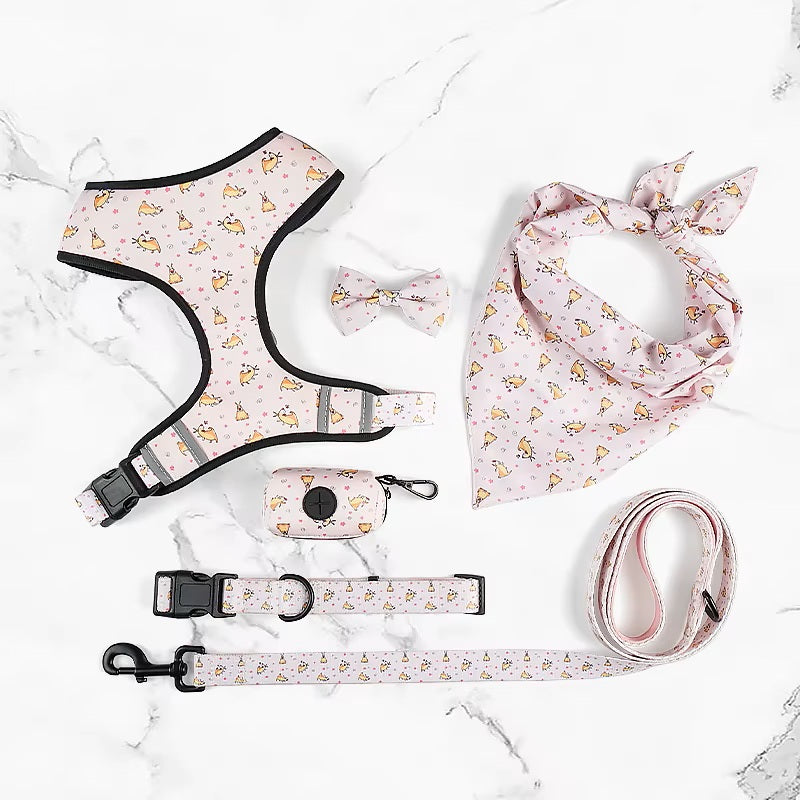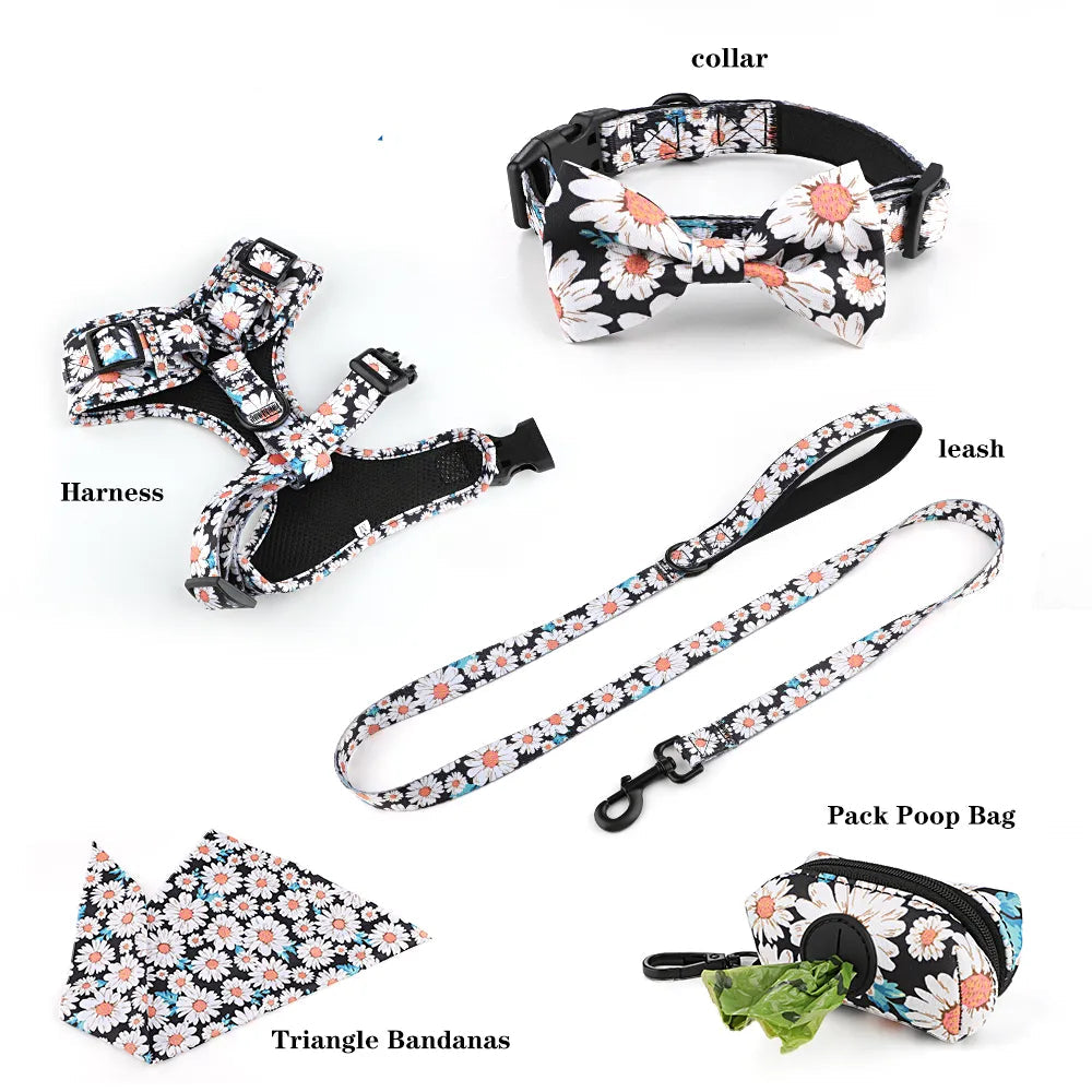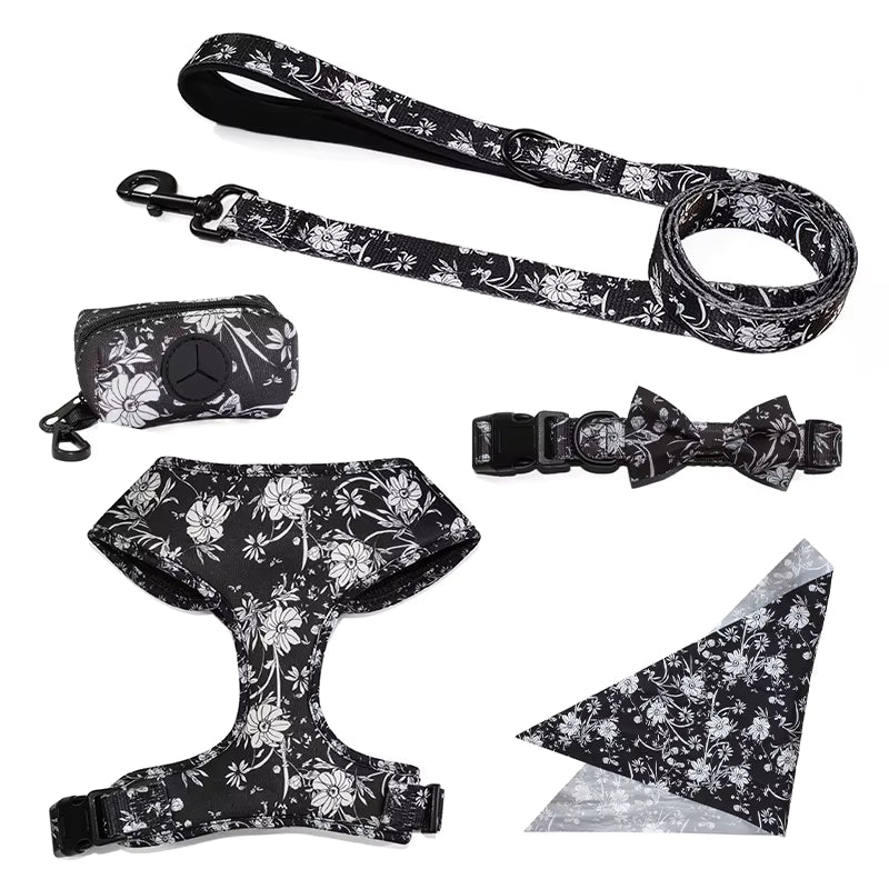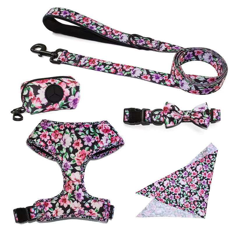 Floral Pattern Matching 5-piece bundle - Harness Leash Collar Bandana Poop Bag