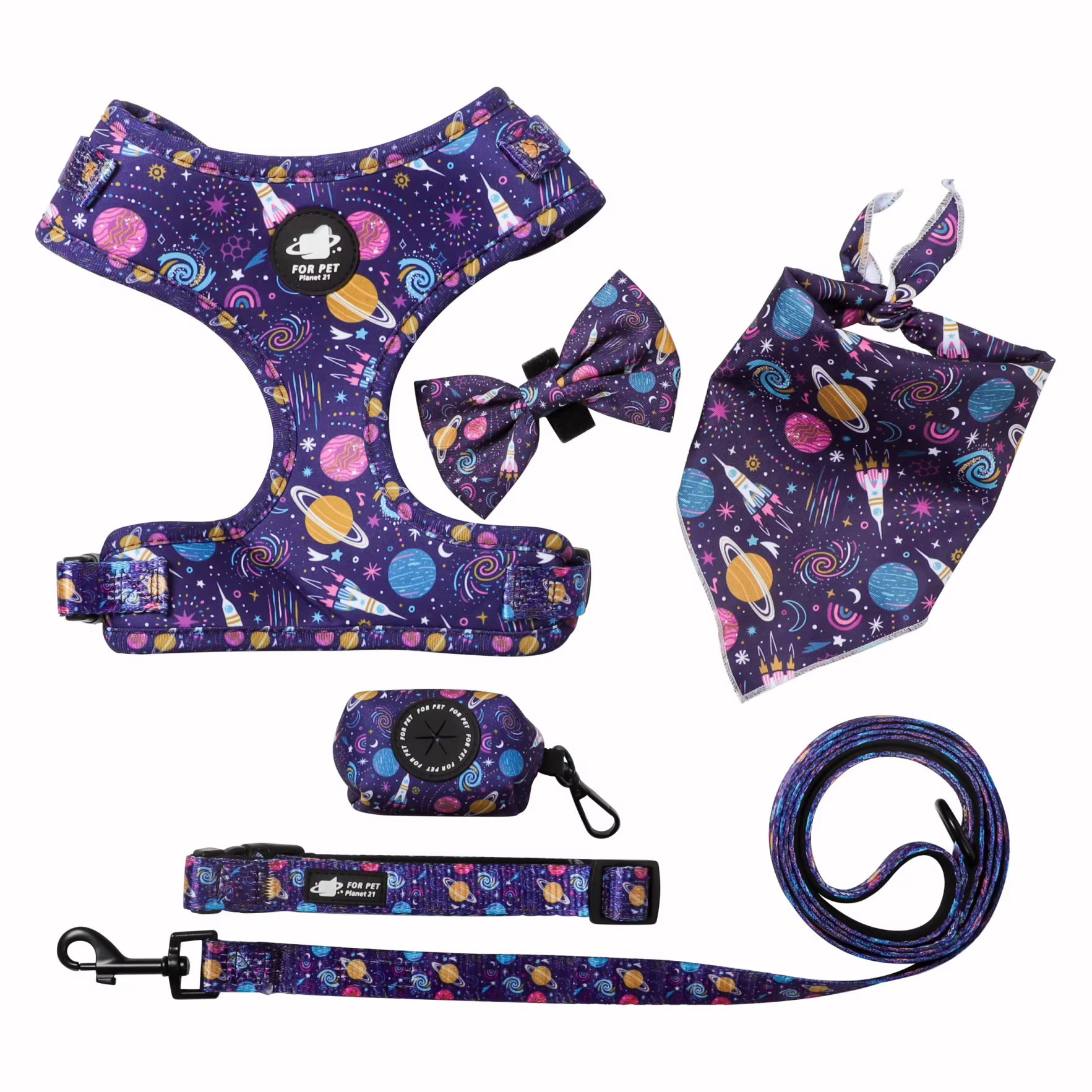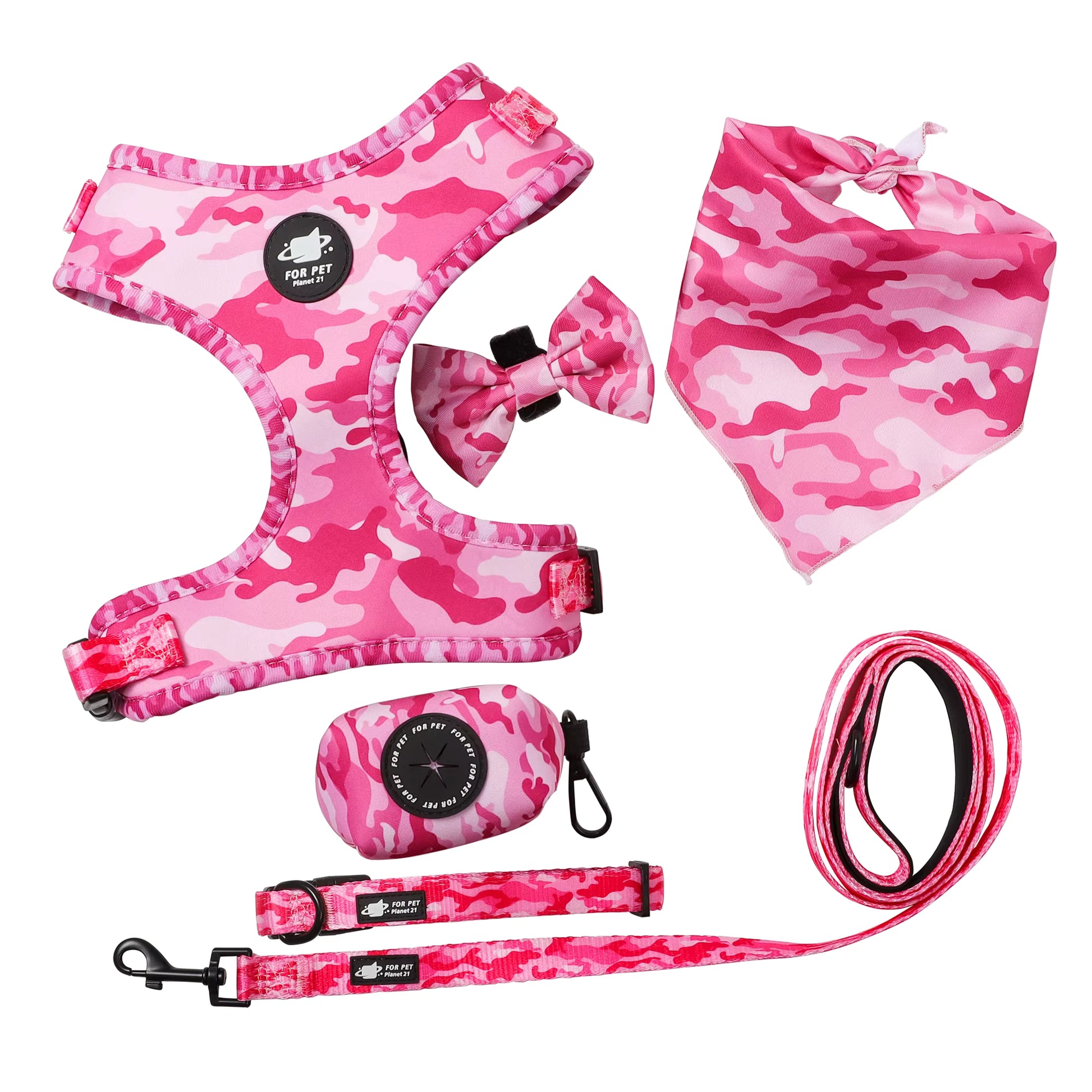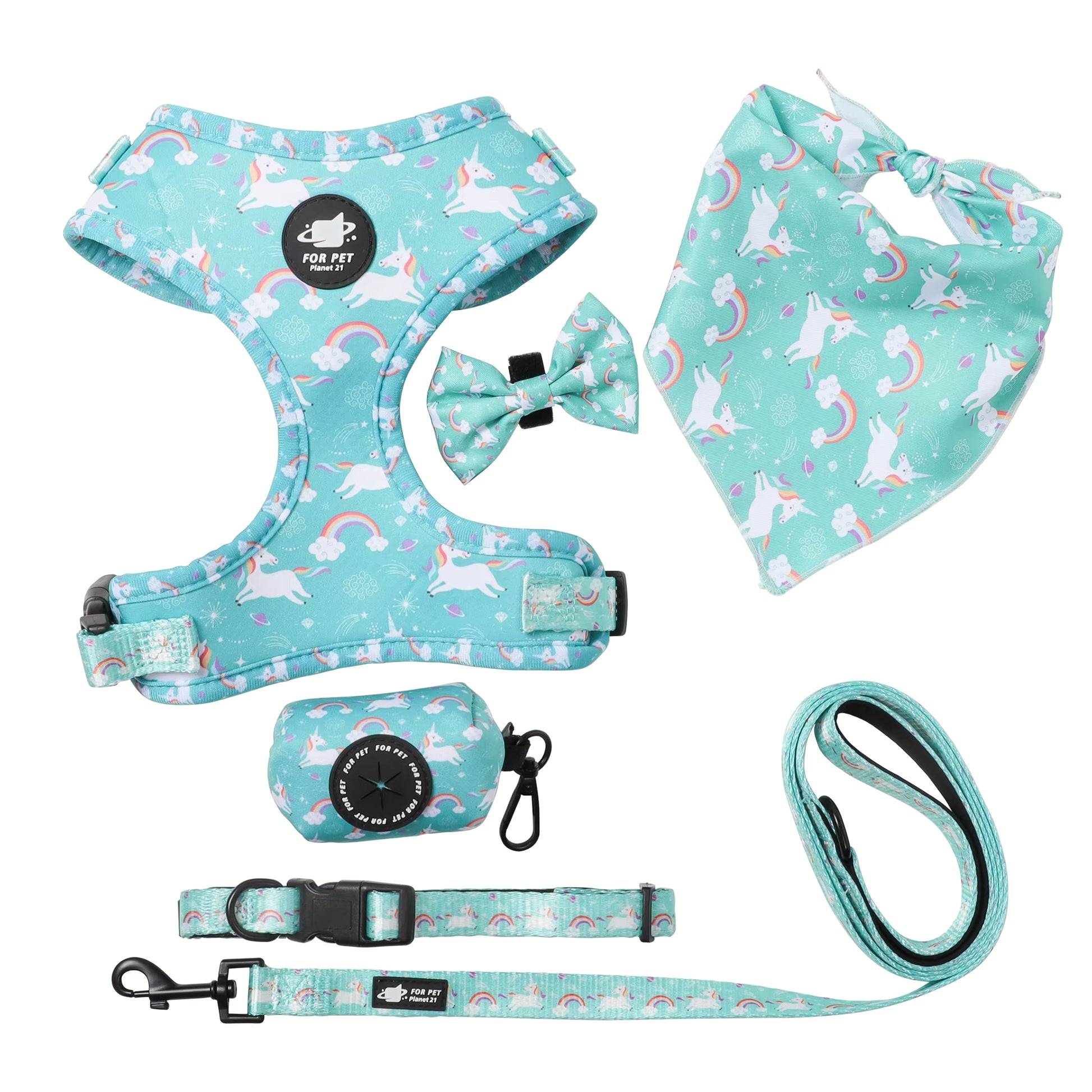 Floral Pattern Matching 5-piece bundle - Harness Leash Collar Bandana Poop Bag