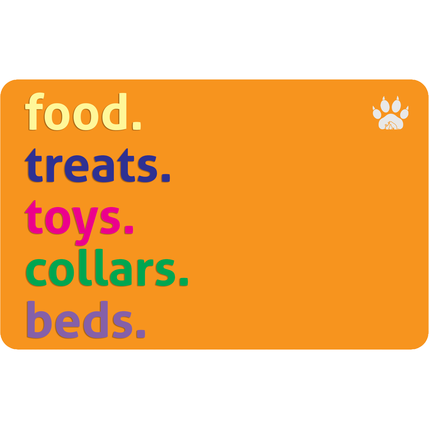 Food Treats Toys Collars Bed - Paws and Claws Digital Gift Card