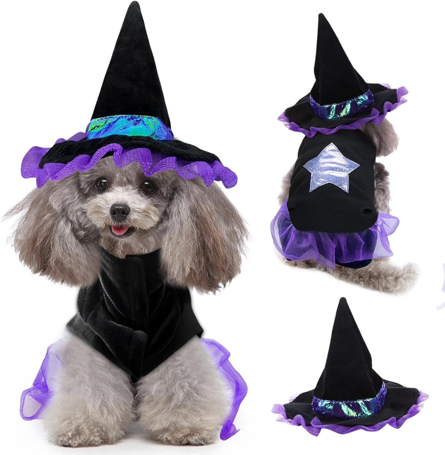 Pet Costumes for Cats and Dogs Cosplay: This adorable set includes a witch cape and matching hat, perfect for dressing up your cat, dog, or other small pets for special occasions.