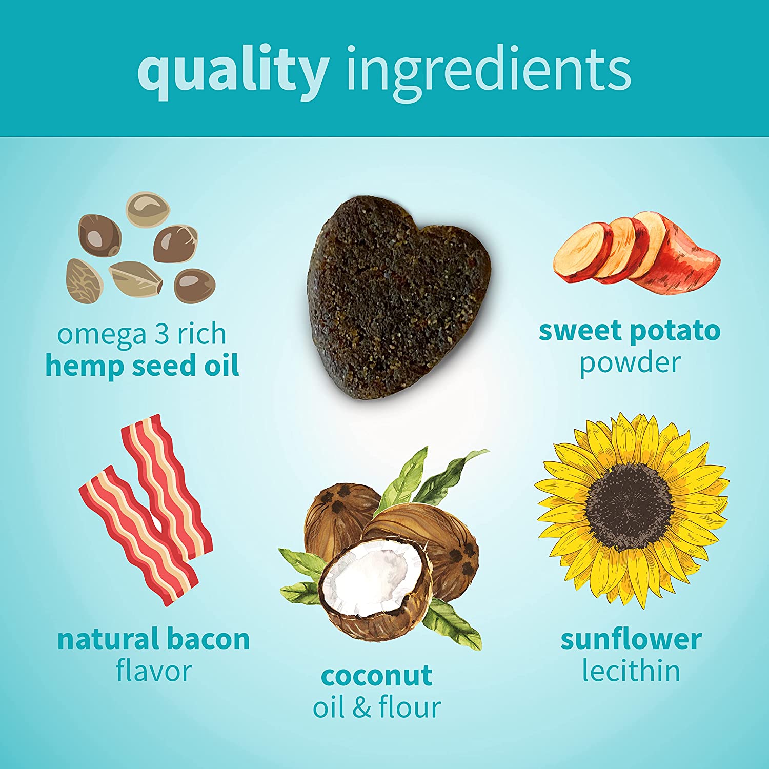 These bacon and sweet potato flavored heart-shaped Chewables are compact, yet malleable, resistant to crumbling and can be served whole or easily divided.