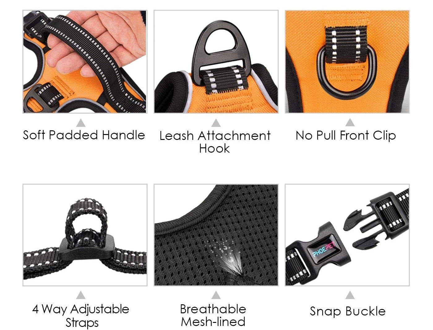 - EASY TO PUT ON & TAKE OFF - This dog harness has 3 buckles( One is on the neck with Lockable, and two are on the chest), NO NEED to go through the dog’s head. This will let your dog love to wear harnesses!