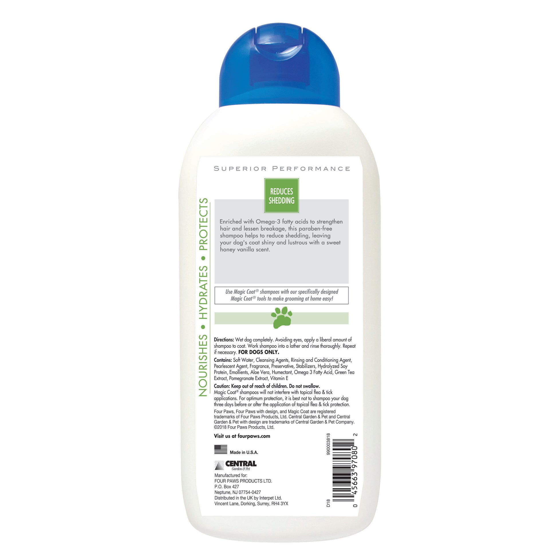 Help minimize shedding and strengthen your dog's coat with Magic Coat Reduces Shedding Shampoo! This dog deshedding shampoo is specially formulated with the added benefit of omega-3 fatty acids that promote a healthy, lustrous coat and help to prevent excess dog shedding. With this dog shampoo for shedding, you can help reduce unwanted hair on your clothes and furniture while leaving your best friend clean with a honey-vanilla scent. Free of parabens and dyes, this shampoo is proudly made in the USA!
