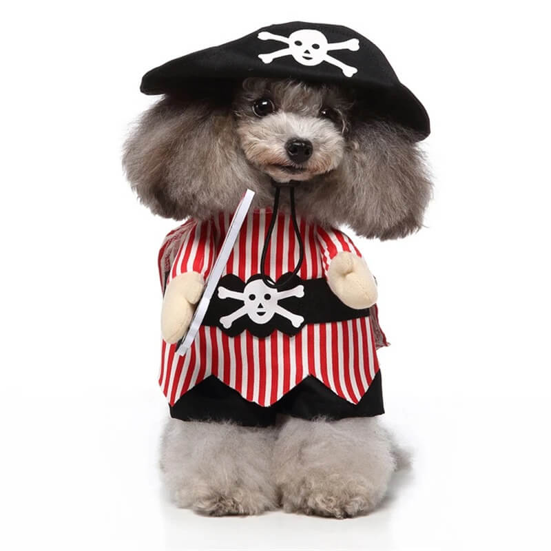 Embark on a swashbuckling adventure with our “Pawirates Adventure” pirate dog Halloween costume. This charming costume transforms your furry friend into a playful pirate, complete with red and white stripes, a soft fabric knife, and a black pirate hat. Get ready for laughs and smiles as your pet becomes the cutest pirate to sail the seven seas.