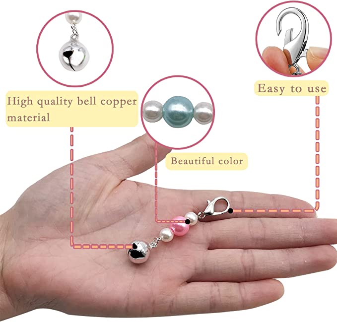 - Material: high-quality metal lobster clasp and faux pearl beads. The bells are made of copper. They are smooth and corrosion-resistant, safe for pets.