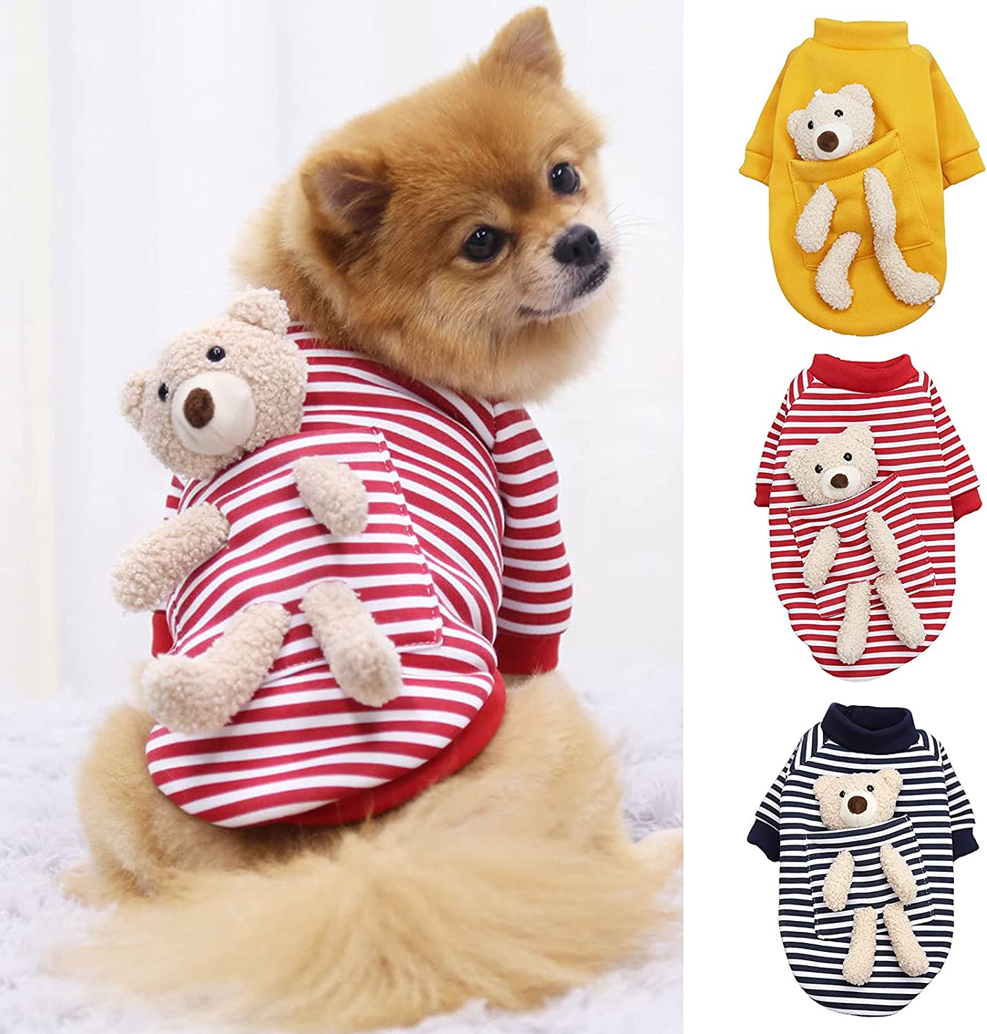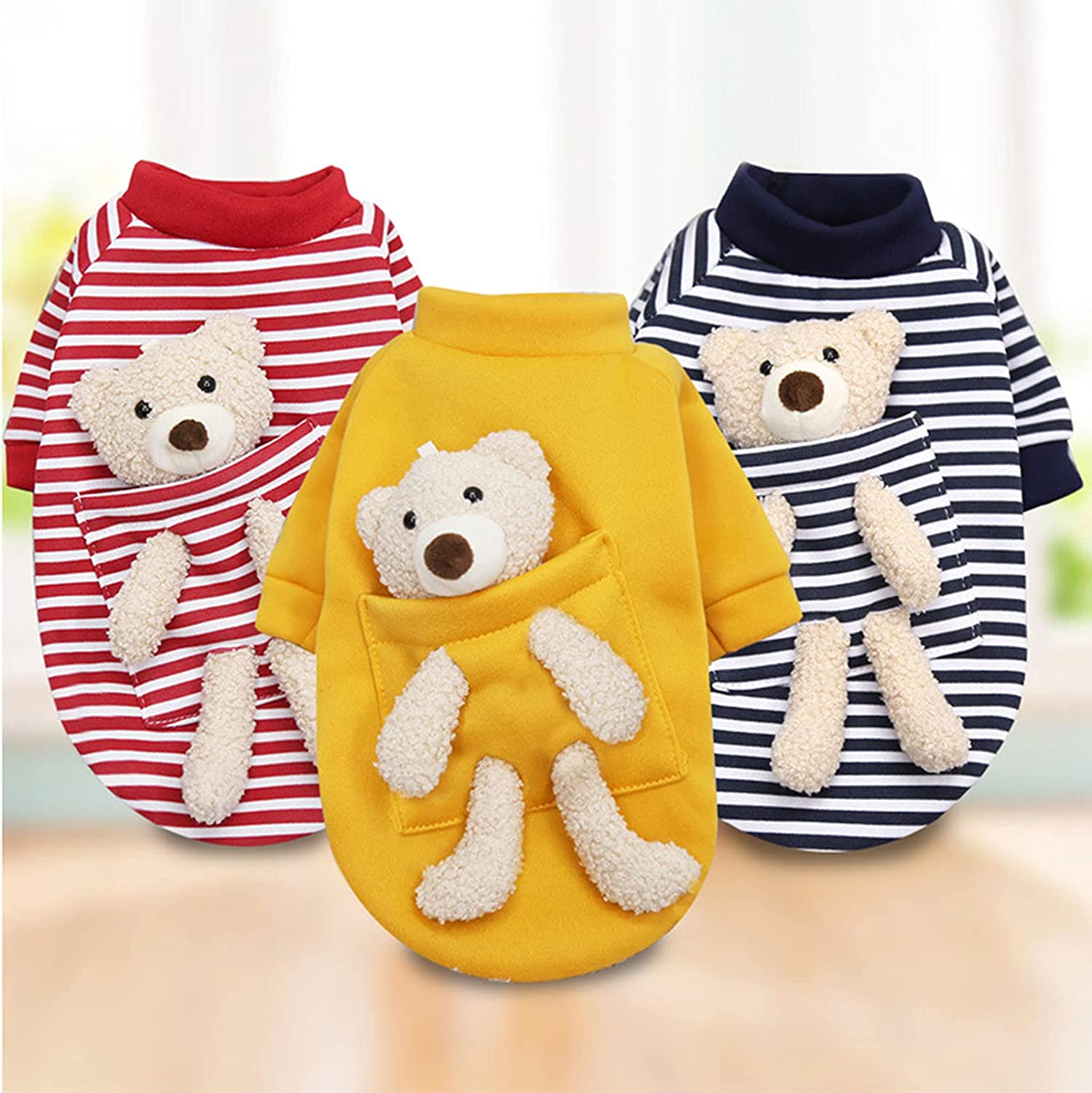 Designed with plush doll decor and solid color or stripe patterns, this pet garment adds an adorable and fashionable touch to your pet's wardrobe, making them look more attractive.
