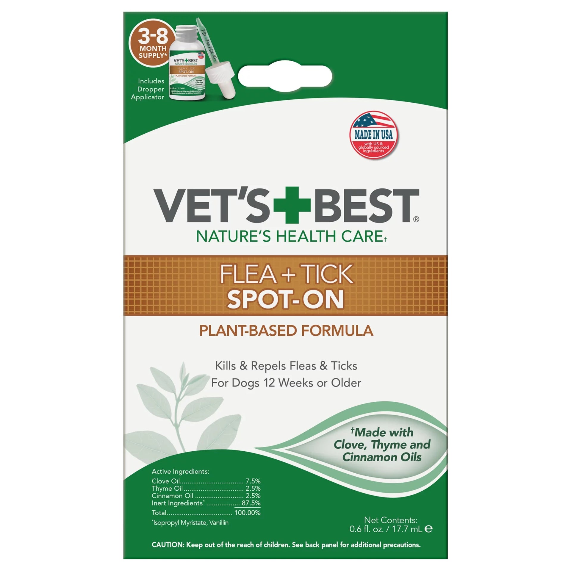 - SAFE AND EFFECTIVE: Vet's Best Flea and Tick Spot-On Formula kills and repels fleas and ticks with natural ingredients.