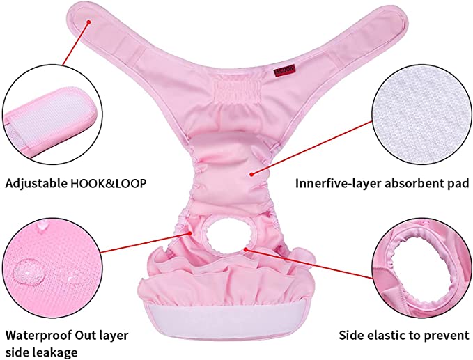- CARE & PROTECTION- We should give our female dogs more care during their periods, this Female Dog Wraps can prevent infections and keep our home clean. Having multiple dogs of different genders in the house or walking your dog outside, these female dog pants can help your dogs avoid unwanted pregnancies and hassles.