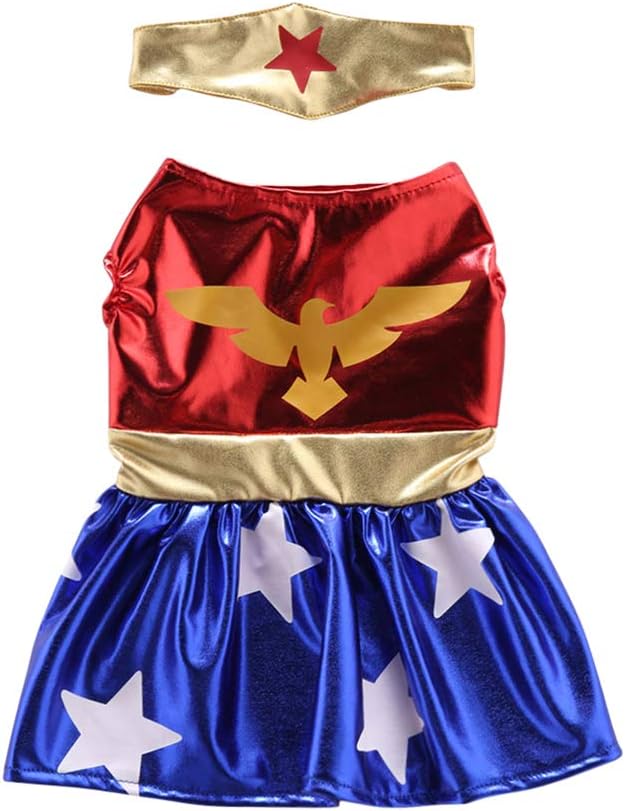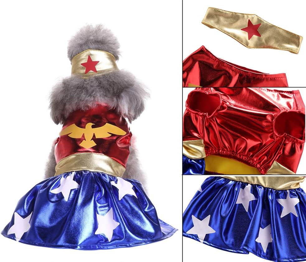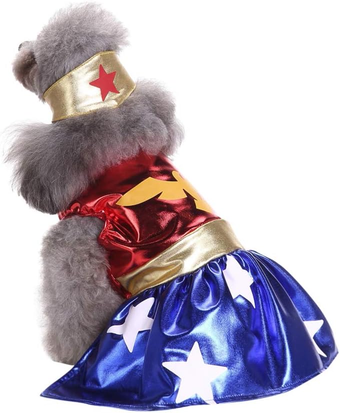 Available in vibrant colors like shining red, jewel blue, and gold, this apparel features fun patterns of stars and eagles. Plus, it comes with a cute handband to complete your pet's stylish look!